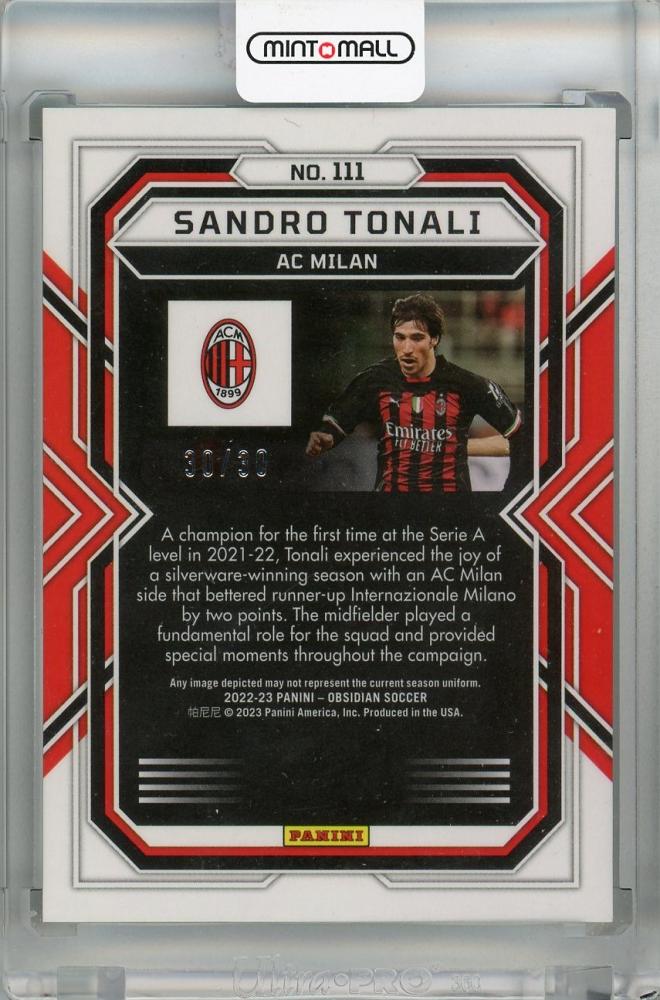 2022-23 Panini Obsidian Sandro Tonali Red Pulsar #111 (Lastナンバー)【30/30】 AC Milan