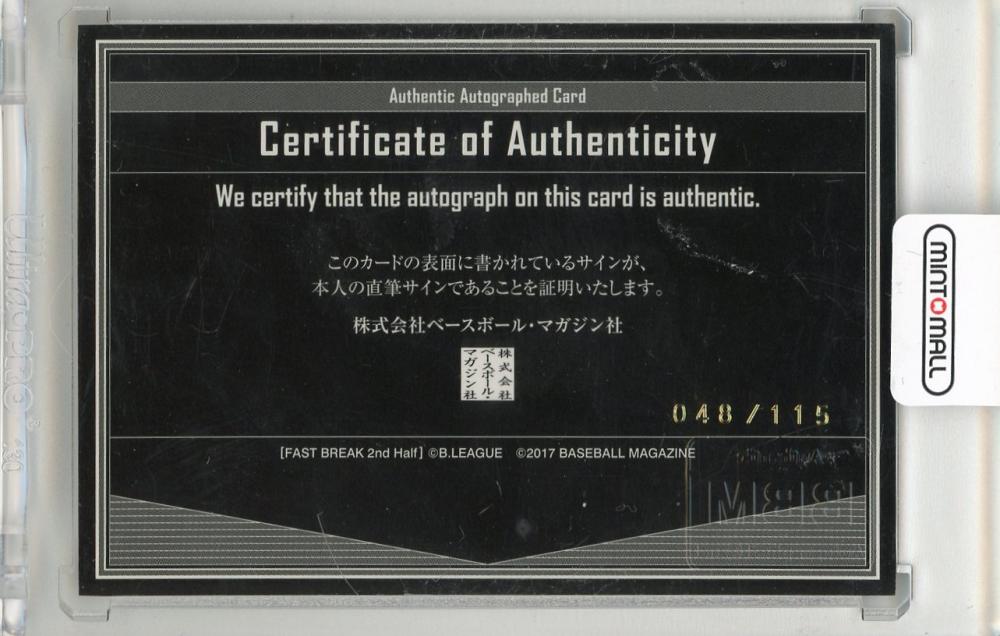 BBM ×B.LEAGUE 2016-17 FAST BREAK 2nd Half 根來新之助 直筆サインカード【048/115】 大阪エヴェッサ