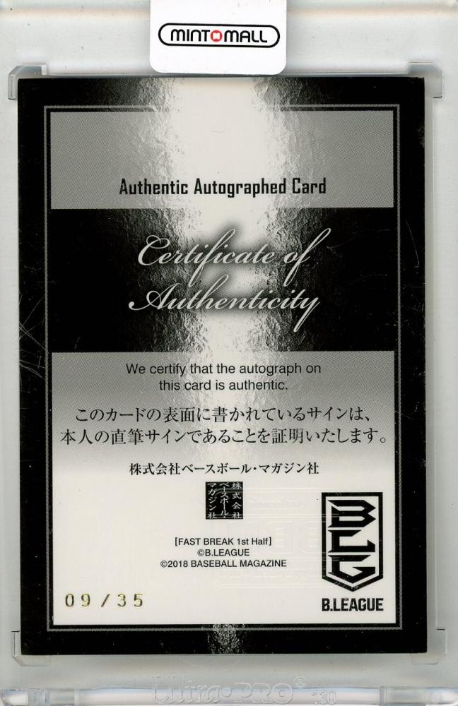 BBM ×B.LEAGUE 2017-18 FAST BREAK 1st Half 田中大地 直筆サインカード タテ版【09/35】 滋賀レイクスターズ