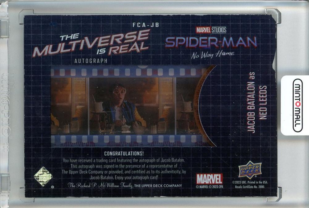 2023 Upper Deck Marvel Studios Spider-Man No Way Home Jacob Batalon/Ned Leeds The Multiverse is Real Autographs/#FCA-JB 【左側面難あり】