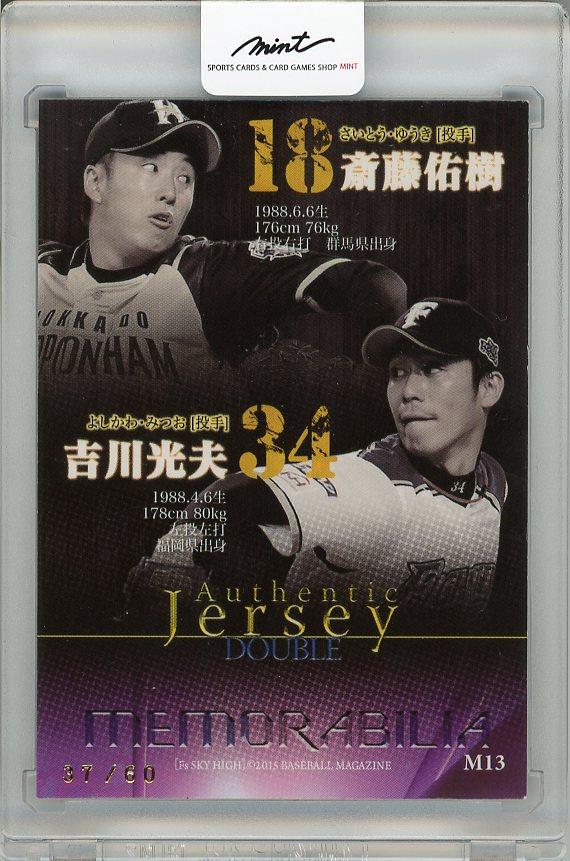 【裏面右下角若干白欠けあり】2015 BBM 北海道日本ハムファイターズ 「SKY HIGH」 斎藤佑樹 & 吉川光夫 ジャージカード【37/60】