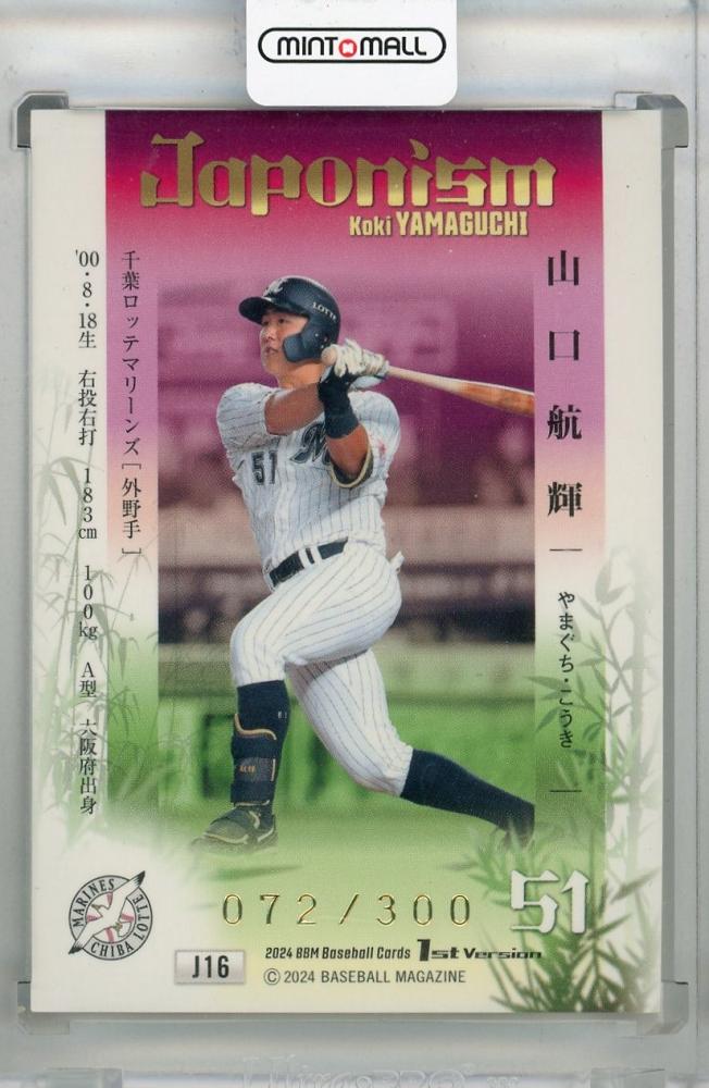 2024 BBM 1stバージョン 山口航輝 JAPONISM 金箔版【072/300】 千葉ロッテマリーンズ