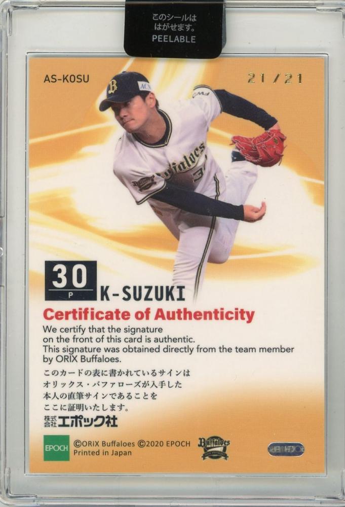 2020 EPOCH オリックスバファローズ STARS & LEGENDS K-鈴木 直筆サインカード【Last No. 21/21】