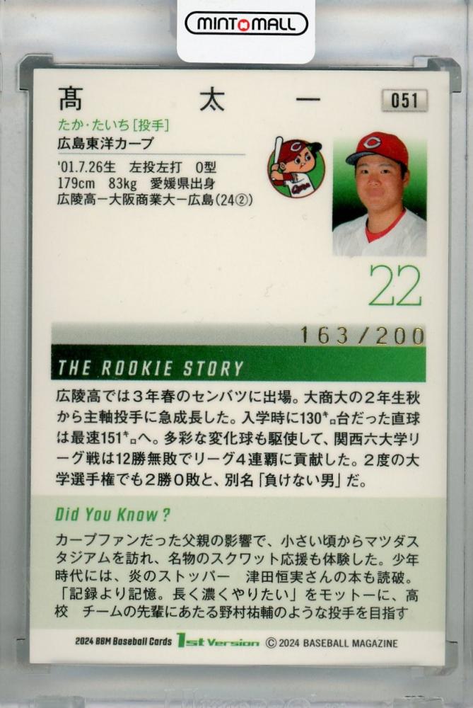 2024 BBM 1stバージョン 高太一 ブルー箔(RC)【163/200】 広島東洋カープ
