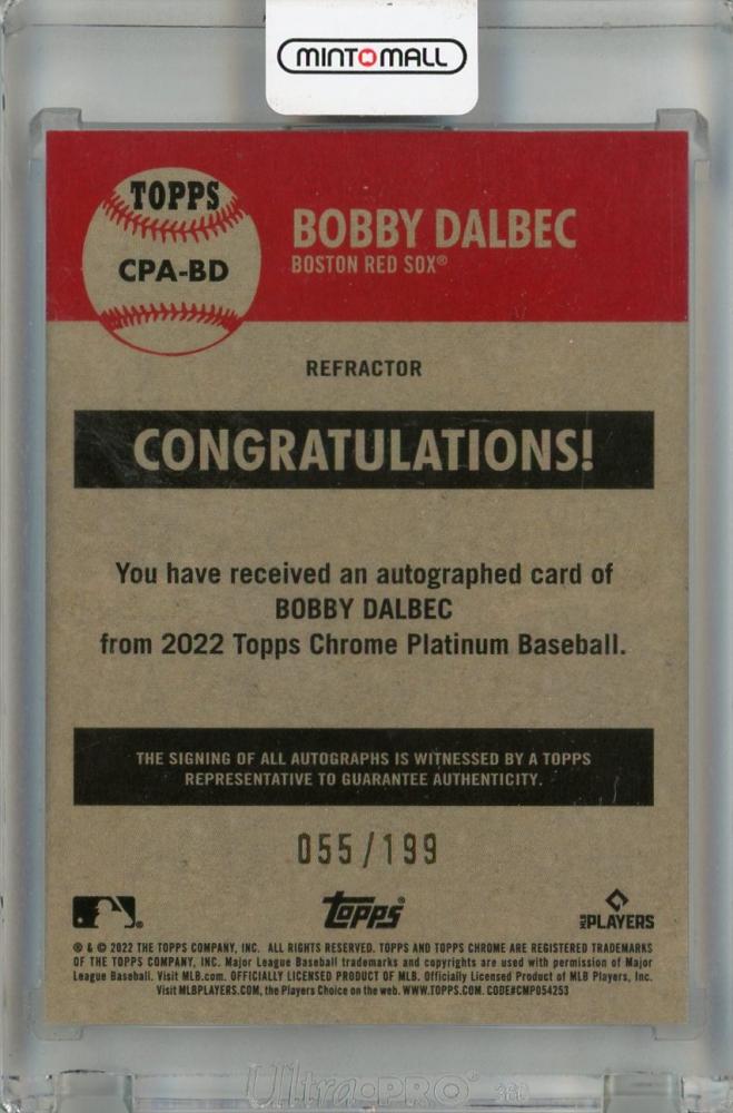 2022 Topps Chrome Platinum Anniversary Bobby Dalbec Autographs Refractor #CPA-BD【055/199】 Boston Red Sox