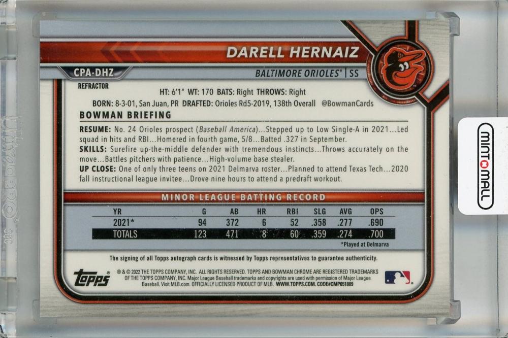 2022 Topps Bowman Darell Hernaiz Chrome Prospect Autographs Refractor #CPA-DHZ 1st【479/499】 Baltimore Orioles