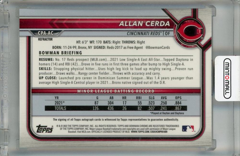 2022 Topps Bowman Allan Cerda Chrome Prospect Autographs Base Refractor #CPA-AC 1st【082/499】 Cincinnati Reds