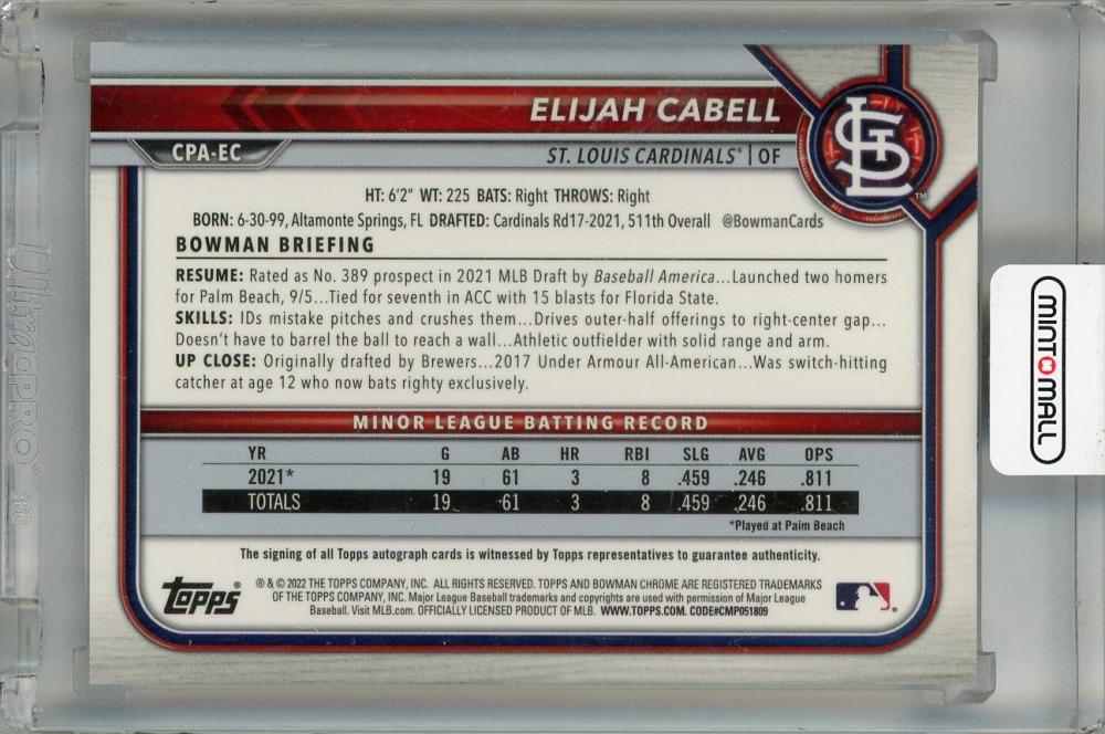 2022 Topps Bowman Elijah Cabell Chrome Prospect Autographs Purple #CPA-EC 1st【245/250】 St. Louis Cardinals