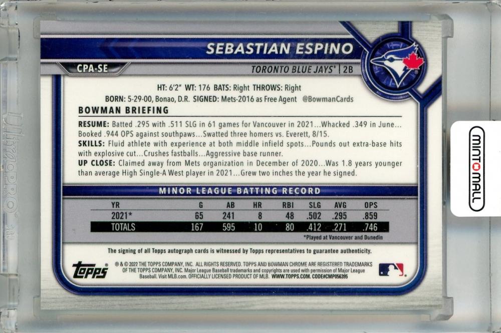 2022 Topps Bowman Chrome Sebastian Espino Chrome Prospect Autographs Yellow #CPA-SE 1st【30/75】 Toronto Blue Jays