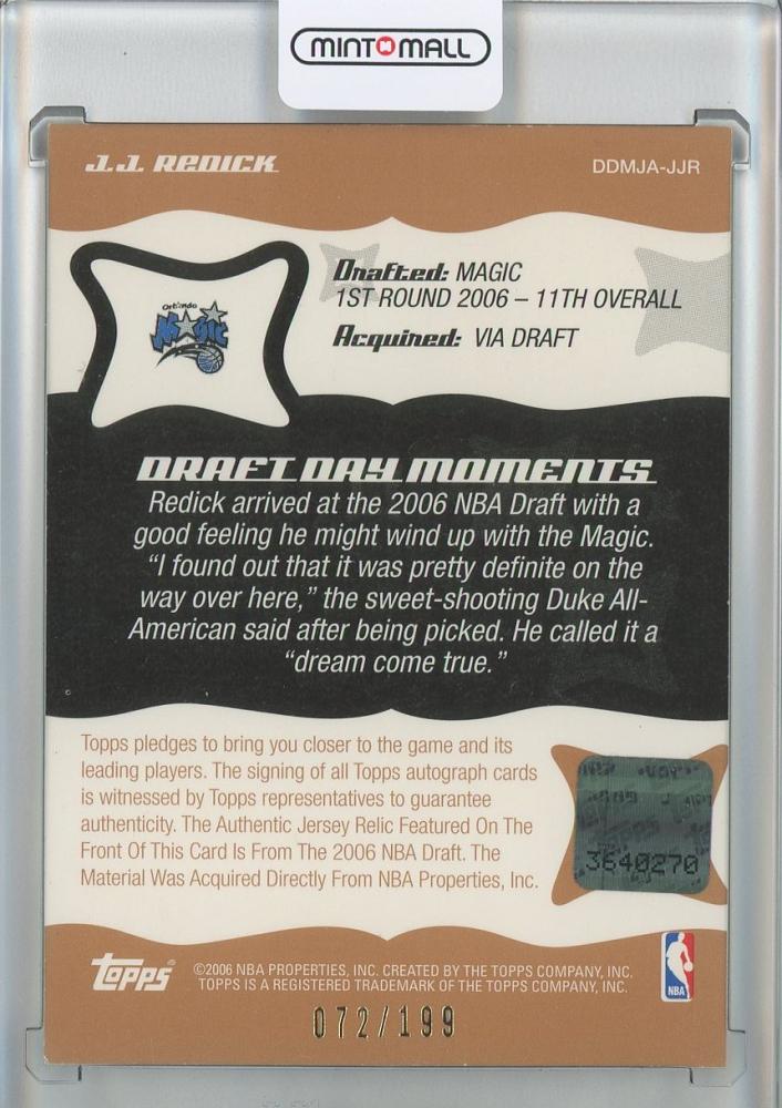 2006-07 Topps Basketball J.J. Redick Draft Day Moments/Autograph/Jersey/RC【072/199】 Orlando Magic