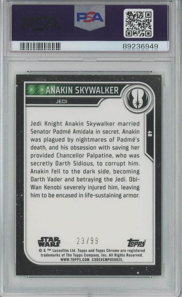 2023 Topps Chrome Star Wars Anakin Skywalker Base/Green Refractor/#48【23/99】【PSA10】