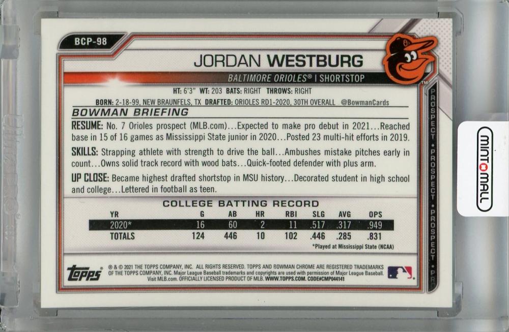 2021 Topps Bowman Jordan Westburg Chrome Prospects Orange #BCP-98【08/25】 Baltimore Orioles