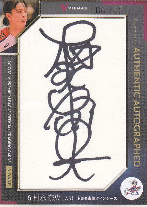 2017-18 V ・プレミアリーグ 女子 トヨタ車体 村永奈央 挟み込み・直書き直筆サインカード 06/25