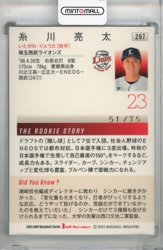 2024 BBM 1stバージョン 糸川亮太 ピンク箔版(RC)【51/75】 埼玉西武ライオンズ