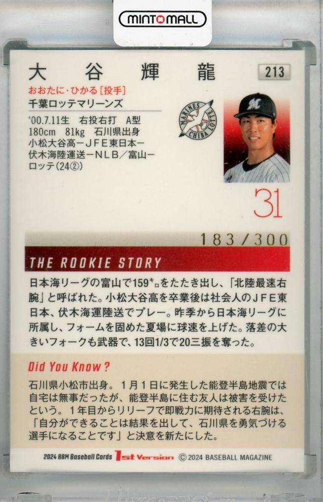 2024 BBM ベースボールカード 1stバージョン 大谷輝龍 レギュラー ルーキーパラレル 銀紙版【174/300】 千葉ロッテ