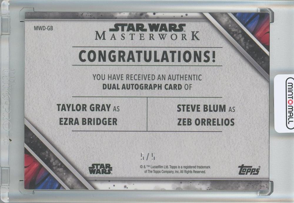 2022 topps STARWARS MASTERWORK Steve Blum as Zeb Orrelios&Taylor Gray as Ezra Bridger Dual Autographs/#MWD-GB【5/5】
