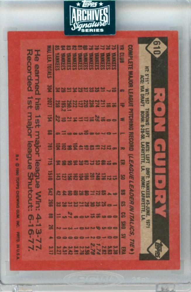 2024 TOPPS Archives Signature Series Retired Ron Guidry Autograph【67/79】 New York Yankees