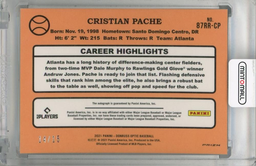 2021 Panini Donruss Optic Cristian Pache Retro 1987 Rated Rookie Signatures Black #4 Auto 【14/15】 Atlanta Braves