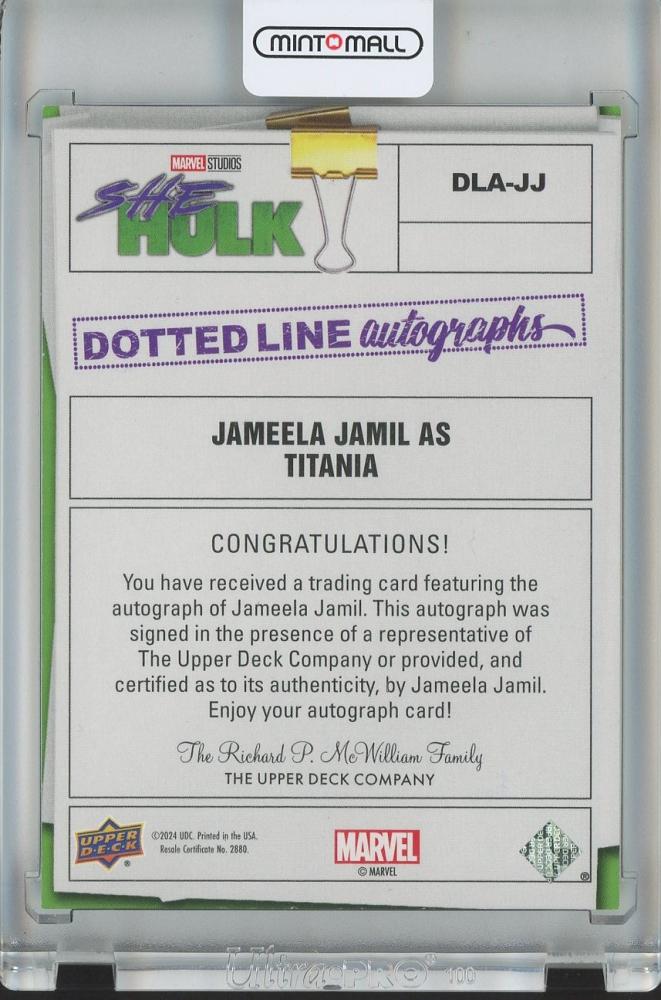 2024 UPPER DECK MARVEL SHE-HULK ATTORNEY AT LAW Jameela Jamil as Titania Dotted Line Autographs/#DLA-JJ