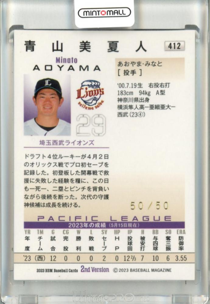 2023 BBM ベースボールカード 2NDバージョン 青山美夏人 ルーキー レギュラーカード 1stバージョンアップデート版 ホロ箔サインカード【50/50】《ラストナンバー!》 西武