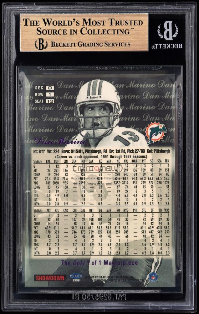 1998 Flair Showcase #13 Dan Marino Legacy Collection Masterpieces Row 1 1/1 BGS GEM MINT 9.5