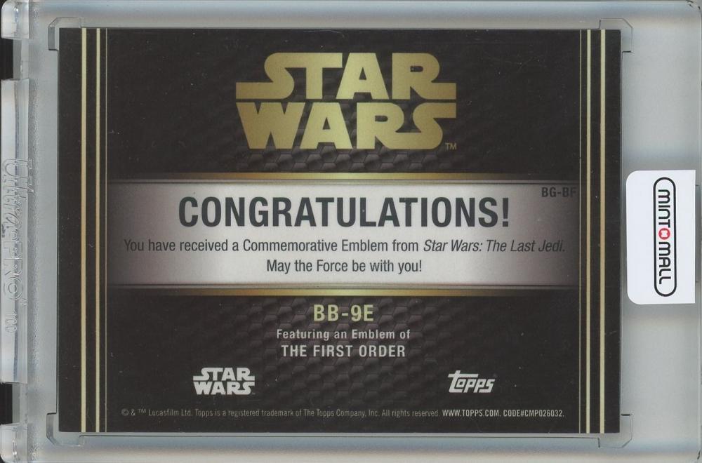 2017 Topps Star Wars The Last Jedi BB-9E Commemorative Emblem Relic/#BG-BF