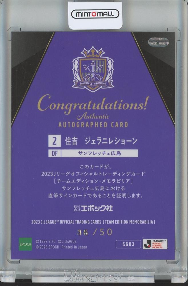 EPOCH 2023 Jリーグオフィシャル トレーディングカード チームエディション・メモラビリア サンフレッチェ広島 住吉 ジェラニレショーン 直筆サインカード/#SG3【36/50】 サンフレッチェ広島