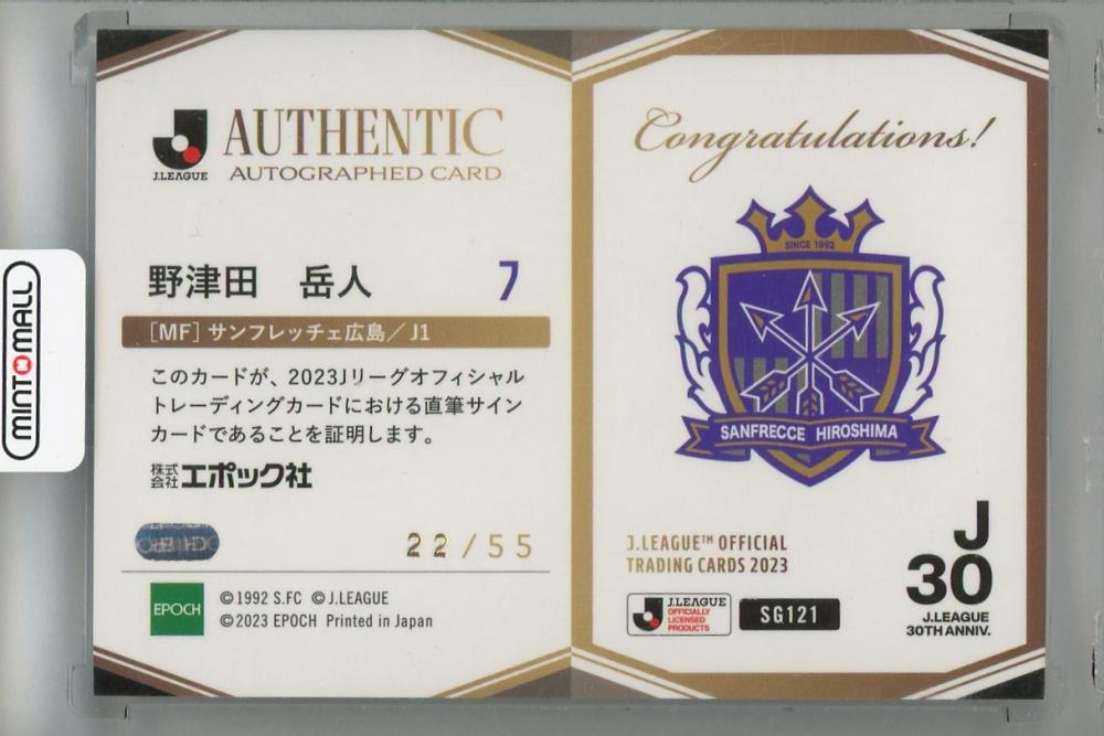 2023 EPOCH Jリーグオフィシャルトレーディングカード 野津田岳人 直筆サインカード【22/55】 サンフレッチェ広島