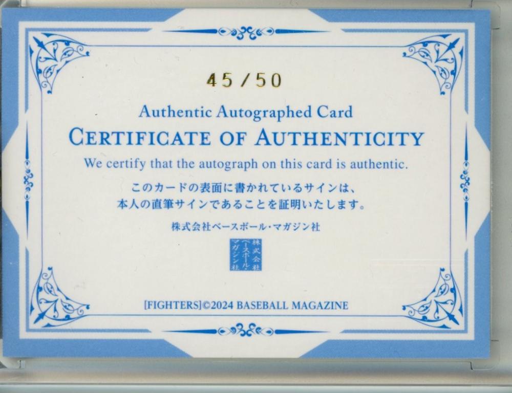 2024 BBM 北海道日本ハムファイターズ 河野竜生 直筆サインカード【45/50】