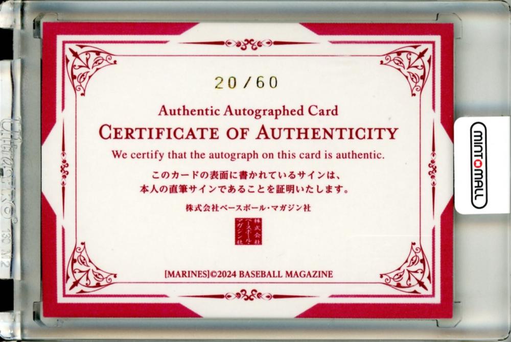 2024 BBM 千葉ロッテマリーンズ ⼩野郁 直筆サインカード【20/60】
