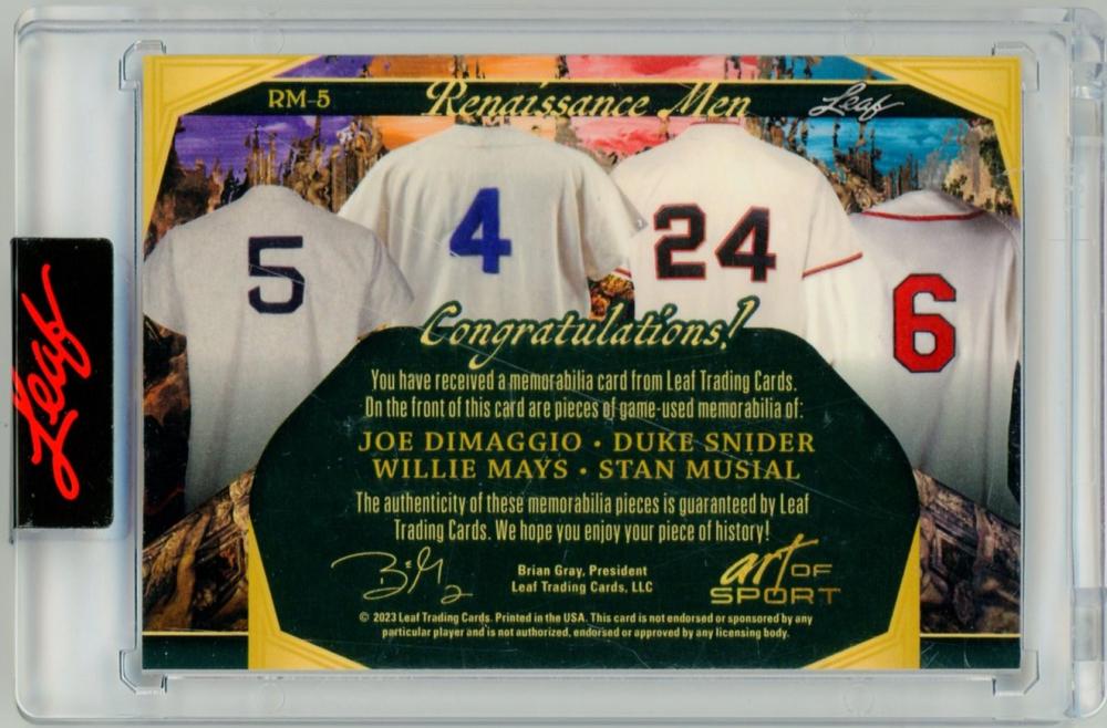 2023 Leaf Art of Sport Joe Dimaggio / Duke Snider / Willie Mays / Stan Musial #RM-5 Renaissance Men【7/7】