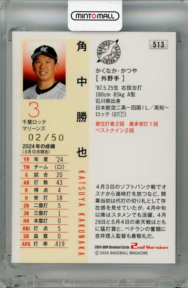2024 BBM 2ndバージョン 角中勝也 ホロ箔サインカード【02/50】 千葉ロッテマリーンズ
