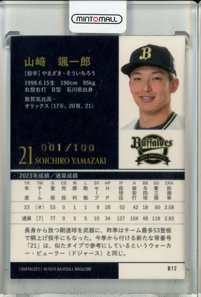 2024 BBM オリックス・バファローズ 山崎颯一郎 レギュラー 金紙ホロPP版(1stナンバー!)【001/100】