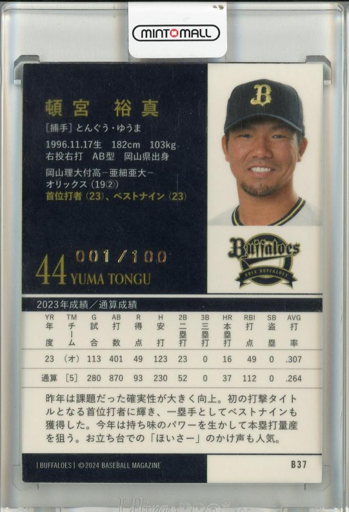 2024 BBM オリックス・バファローズ 頓宮裕真 レギュラー 金紙ホロPP版(1stナンバー!)【001/100】