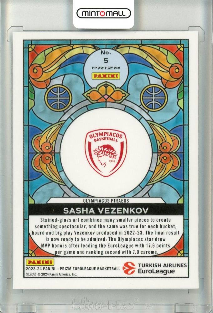 2023-24 Panini Prizm Turkish Airlines Euroleague Basketball Sasha Vezenkov #5 Stained Glass Olympiacos Piraeus