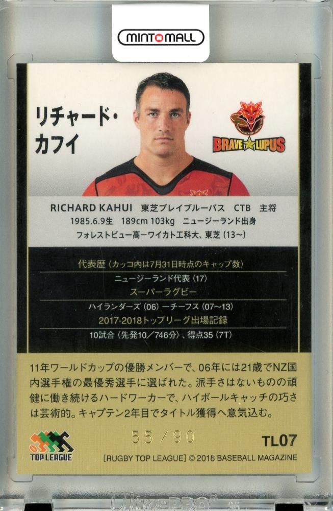 2018-19 BBM ジャパンラグビー トップリーグカード リチャード・カフイ #TL07 直筆サインカード【55/90】 東芝