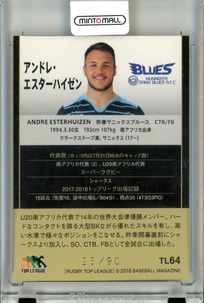 2018-19 BBM ジャパンラグビー トップリーグカード アンドレ・エスターハイゼン #TL64 直筆サインカード【23/90】 宗像サニックス