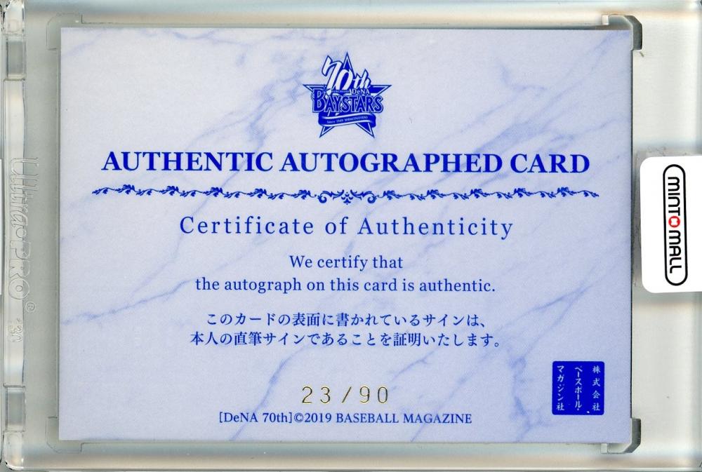 2019 BBM 横浜DeNAベイスターズ 70周年 野村収 直筆サインカード【23/90】