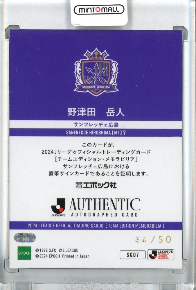 EPOCH 2024 Jリーグオフィシャルトレーディングカード チームエディション・メモラビリア サンフレッチェ広島 野津田岳人 直筆サインカード/#SG07【34/50】 サンフレッチェ広島