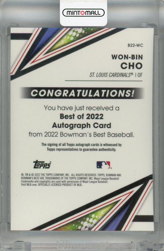 2022 Topps Bowman’s Best Won-Bin Cho Best of 2022 Autographs #B22-WC ※初期傷あり St. Louis Cardinals
