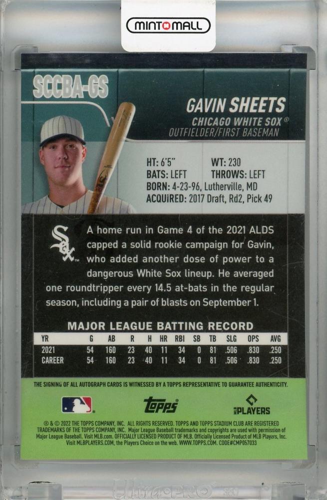 2022 Topps Stadium Club Chrome Gavin Sheets Base Autographs #SCCBA-GS RC Chicago White Sox