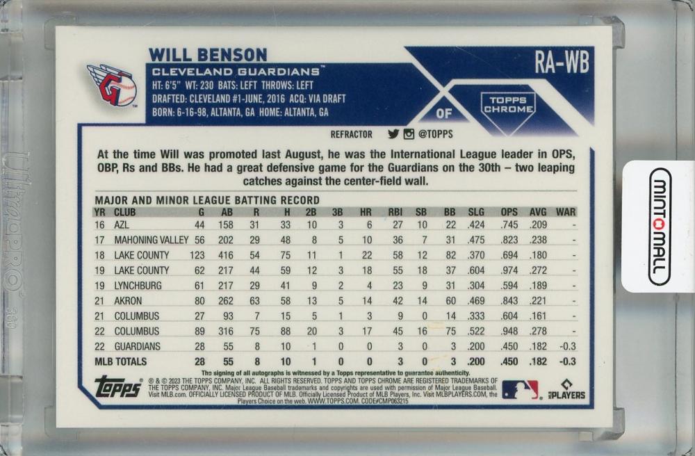 2023 Topps Chrome Will Benson Rookie Autographs Refractor #RA-WB RC ※初期傷あり【095/499】 Cleveland Guardians