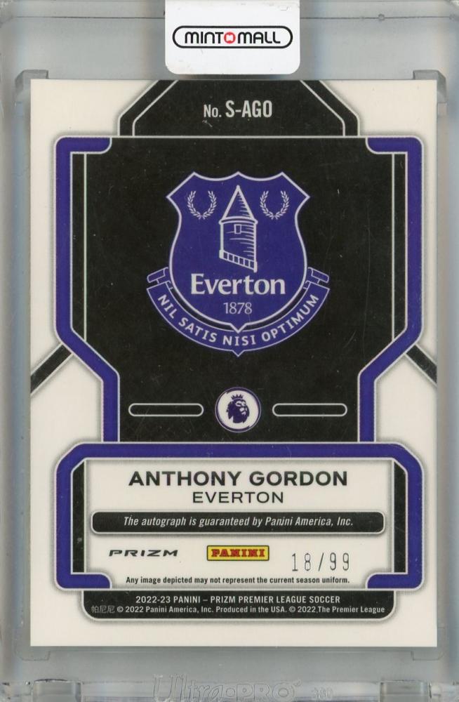 2022-23 Panini Prizm Premier League Anthony Gordon Signatures Silver #64 Auto ※裏面初期傷あり【18/99】 Everton