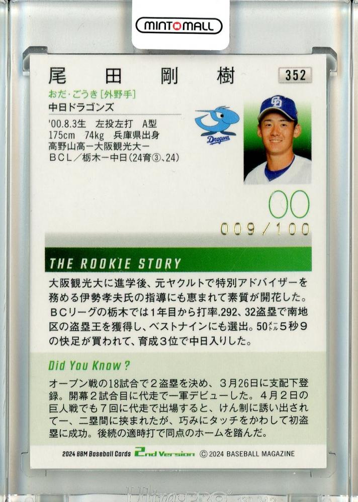 2024 BBM ベースボールカード 2ndバージョン 尾田剛樹 レギュラー 金箔サイン版【009/100】 中日
