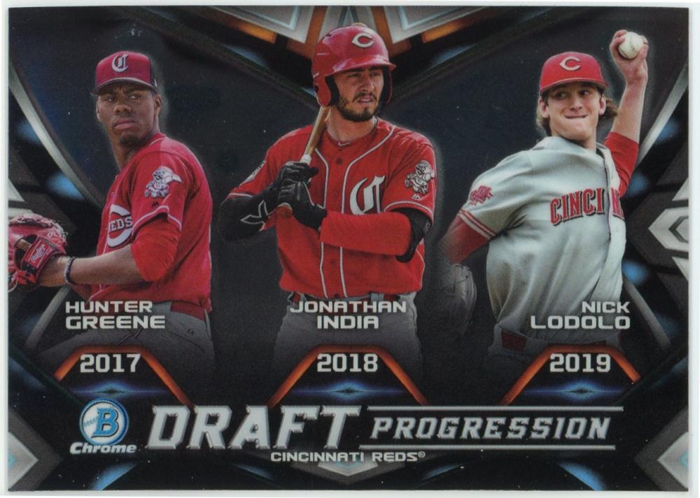 2019 Bowman Chrome Draft Draft Progression #DPRCIN Nick Lodolo/Hunter Greene/Jonathan India