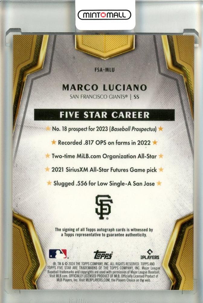2024 Topps Five Star Marco Luciano Five Star Autographs San Francisco Giants