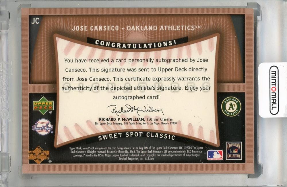 2005 UPPER DECK Sweet Spot Jose Canseco Classic Signatures #JC【Print Run: 230】 Oakland Athletics