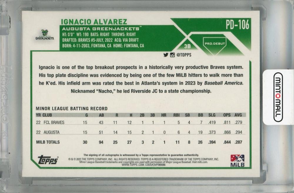2023 Topps Pro Debut Ignacio Alvarez Base Autographs #PD-106 ※初期傷あり Augusta GreenJackets