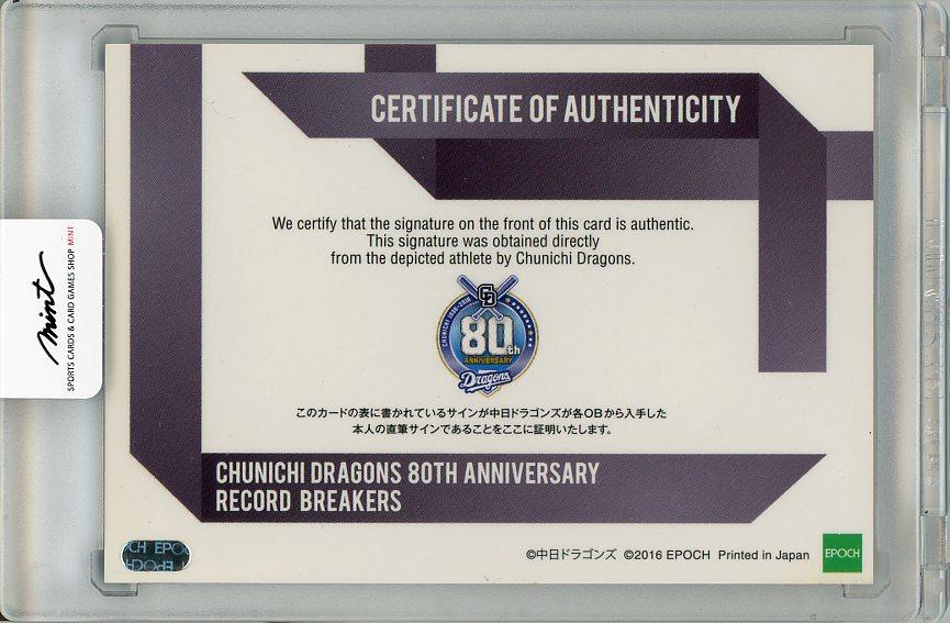 2016 EPOCH 中日ドラゴンズ80周年 RECORD BREAKERS 権藤博 直筆サインカード【12/25】