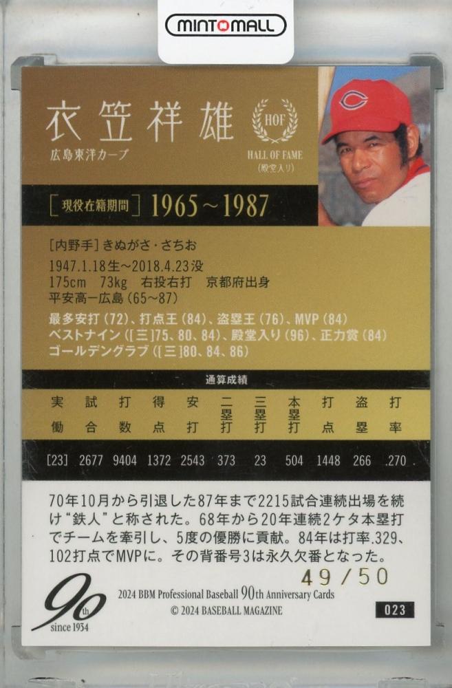 2024 BBM プロ野球90周年 衣笠祥雄 ホロ箔サイン版【49/50】 広島東洋カープ